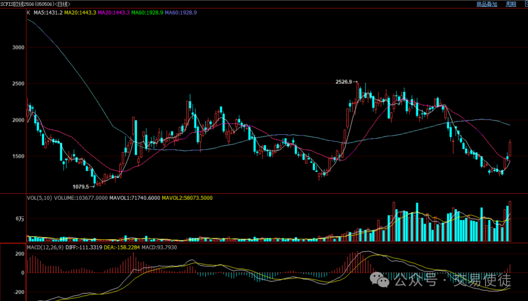 政策超预期落地:中美日内瓦会谈后,美国对华关税从145%降至30%(24%部分暂缓90天),中国同步下调反制关税。这一结果远超市场预期,直接缓解了全球贸易衰退的担忧,刺激航运需求释放。